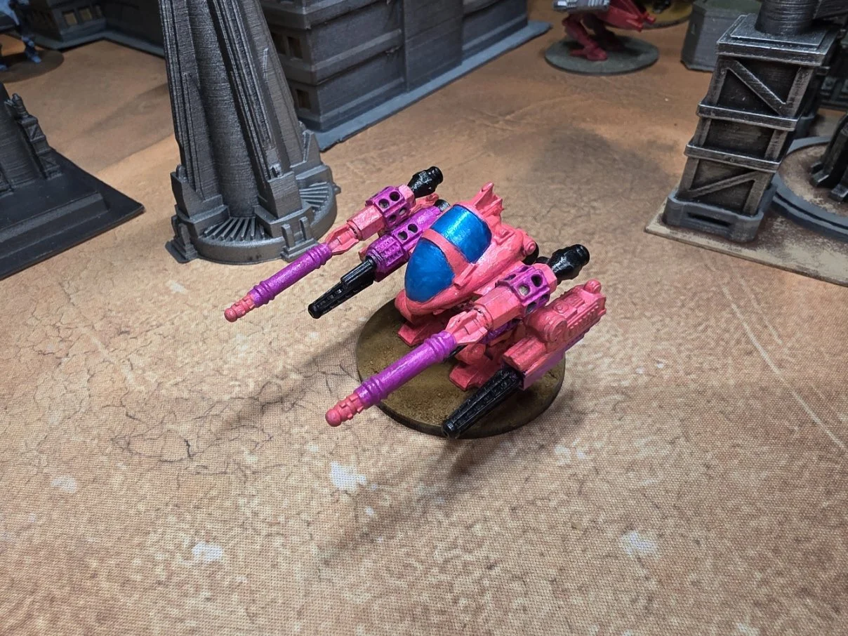 TechCommander is a sci-fi action deathmatch and skirmish style miniatures game. It is fast paced, with high unit lethality and destructible environments. It features mecha (or mech) fighting machines called “Mechanized Strike Vehicles” - or “MSV” for short. In TechCommander, our 10MM scale MSV models are customizable, featuring fast-swap weapons. In most cases If it fits in the free weight and power box of the unit, and on the model’s peg system you can play it. After the player picks weapons they can fill out the remaining free weight and power with awesome gear, both defensive, and offensive. MSV units are the kings of the battlefield and can act twice per turn!